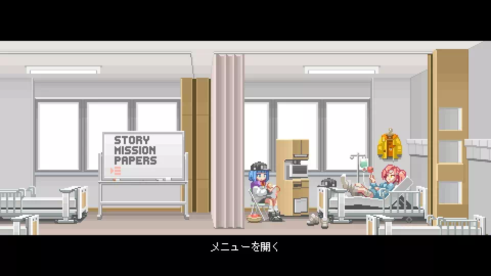 ちなみに、ストーリーやミッションを失敗した場合、タイトル画面が病室に変わる。