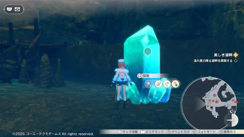 また、フォルミ採掘場にフォルミ採掘場入口から入って少し北に進むと左手辺りに見える大きな結晶の採取ポイントなどから斧の採取ランク2で採取できる。
