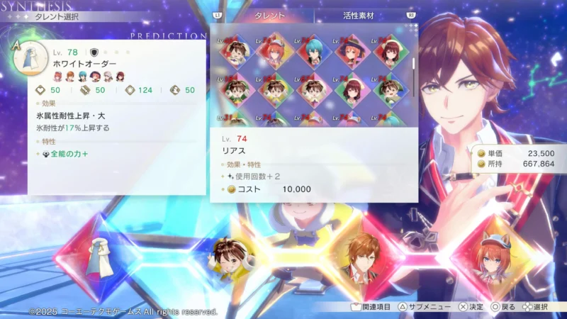 これまでのシリーズのパラメーター系特性は「キャラクターの素のステータス」の◯%分上昇していたが、今作のパラメーター系特性はおそらく「装備品の能力値(特性などで上昇した分も込み)」が◯%分上昇する効果に変わったと思われる。