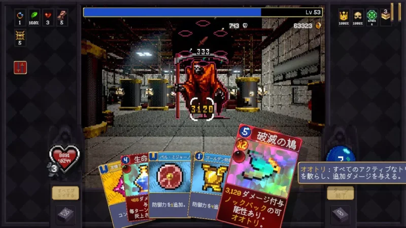 1戦闘ごとになるべく攻撃カードを使わずにひたすらコンボを繋ぎ続けて、永遠のハートを繰り返し使って最大HPを高めていく。